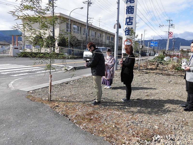 こんにちはナビゲーターの後藤です。気候の変化の著しさに着いていけない今日この頃、いきなり7月上旬の気温になったかと思えば、また冬型の気圧配置で北風が吹きぬける。おかしな気候だと思いつつ、その話題でひと盛り上がりするのもまた事実。結局は感謝、感謝って感じですかね。 本日はおめでたい行事がおこなわれました、そうです地鎮祭です。この度お世話になるO様の自宅兼店舗にて、めでたく着工の運びとなり本日、土地の神様にお許しいただくとともに、事始めの報告をさせて頂いたわけです。O様邸新築工事が無事に進捗いたします事を、心より祈願させて頂きました。私ども半兵衛では、こうした神事をとても大切に考え、必ず執り行うことにしております。そもそも各地域、集落などを統治している氏神様は必ずおられますので。その氏神様の許可なく建物を造ることは当然失礼に当たると考えるからです。昔からの伝統的なしきたりには必ず意味があるといったところでしょうか。とにかくO様邸着工本当におめでとうございます。
